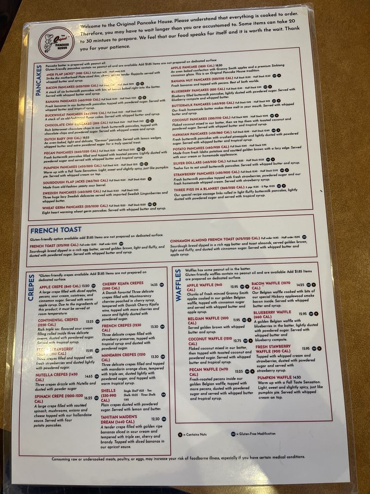 Introducing the menu at Original Pancake House in Anaheim offers a wide range of breakfast and brunch options that cater to various dietary preferences. With vegan and vegetarian choices available, along with classic comfort foods like German and regular pancakes, this spot has been serving solid, no-frills meals for over 70 years. Customer reviews highlight the thin and perfectly cooked strawberry crepes, the delicious Belgian Waffle with whipped cream, and the generously portioned and well-cooked dishes like the hash browns. The homely atmosphere, friendly service, and consistent quality make this restaurant a popular choice for a hearty breakfast or brunch. While the prices may be slightly higher, the superior taste and variety of the menu make it worth the visit. Don't miss out on the chance to try some of the best pancakes in town at Original Pancake House.